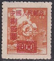Китай (КНР) 1949 год. Паровоз и пароход (ном. 800) с НДП. 1 марка из серии (без клея) ШВ