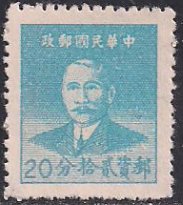 Китай (КНР) 1949 год. Сунь Ятсен (ном. 20). 1 марка из серии (без клея) ШВ