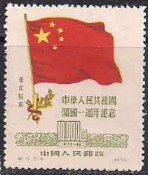 Китай (КНР) 1950 год. Годовщина КНР (ном. 10000). 1 марка из серии (без клея) ШВ 250м