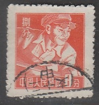 Китай (КНР) 1955 год. Стандарт. Трудящиеся. Кочегар, ном. 8 F, 1 марка из серии (гашёная) (1 из 9) (5/0,4)