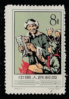 Китай (КНР) 1957 год. Сельскохозяйственная кооперация. Юный барабанщик, 1 марка из серии (гашёная) (1 из 4) (3/0,5)