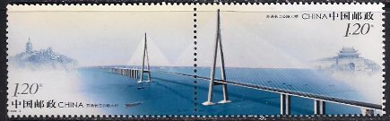 Китай (КНР) 2008 год. Мост Сучжоу-Наньтун. Сцепка 2 марки 1.8м