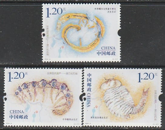Китай (КНР) 2024 год. Вымершая морская фауна. Окаменелости, 3 марки.