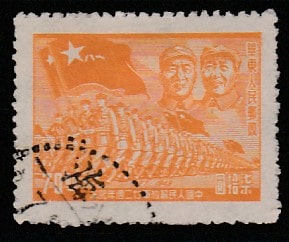 Китай (Восточный Китай) 1949 год. Расходы на гражданскую войну. Генерал Чжу Дэ и Мао Цзэдун, ном. 70 $, 1 марка из серии (гашёная)