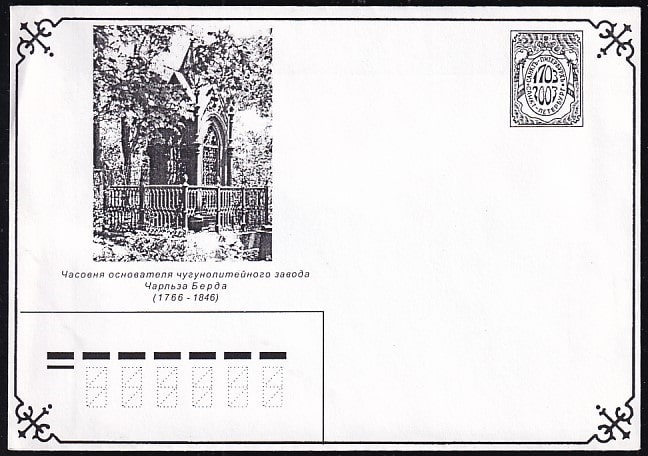 Клубный конверт Часовня основателя чугунолитейного завода Чарльза Берда. Выпуск 2003 год
