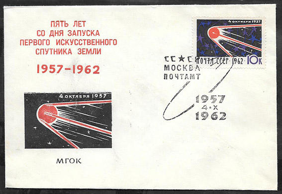 Клубный конверт со спецгашением - Пять лет со дня запуска ИСЗ. Москва. 1962 год