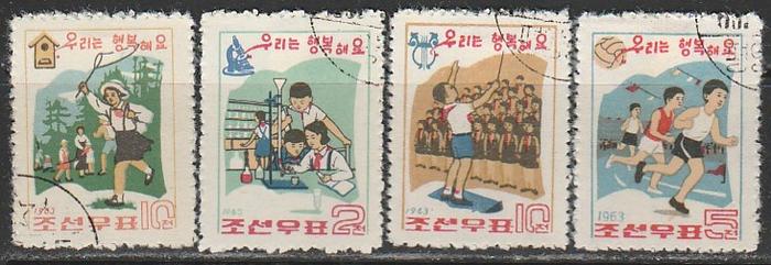 КНДР 1963 год. Счастливая молодёжь, 4 гашёные марки