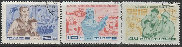 КНДР 1969 год. Здоровье народа - бесплатным медицинским лечением, 3 гашёные марки