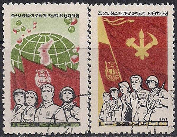 КНДР 1971 год. 6-й Конгресс молодёжной Лиги. 2 гашёные марки