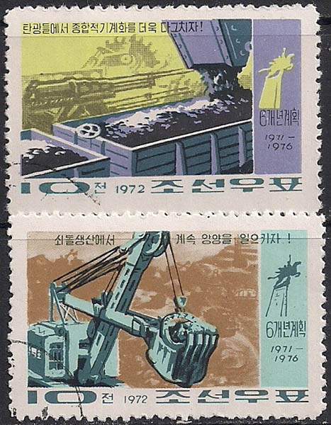 КНДР 1972 год. Горнодобывающая промышленность. 2 гашёные марки