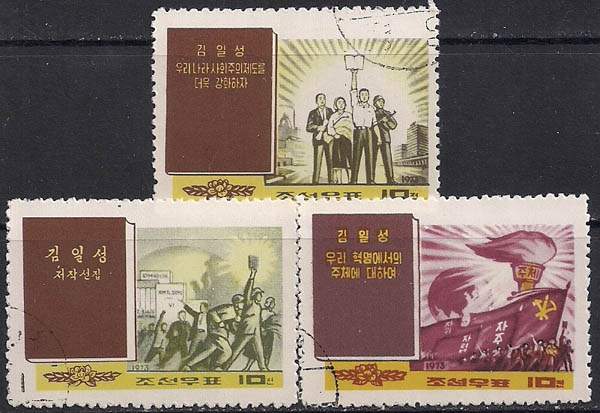 КНДР 1973 год. Книги Ким Ир Сена. 3 гашёные марки