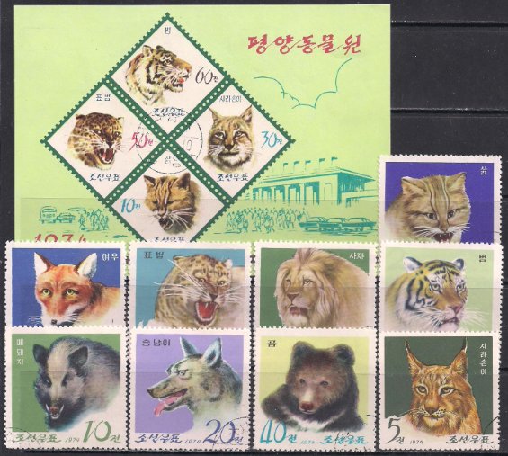 КНДР 1974 год. Фауна зоопарков. 9 марок + блок (гашеные)