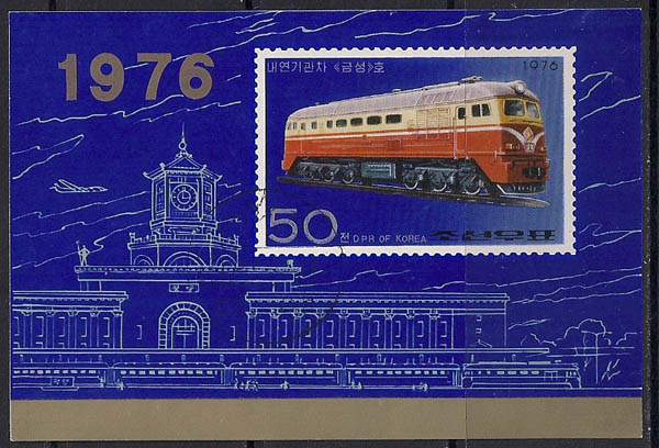 КНДР 1976 год. Тепловоз. 1 гашёный блок