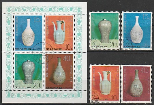 КНДР 1977 год. Старинная утварь, 4 марки + малый лист (гашёные)