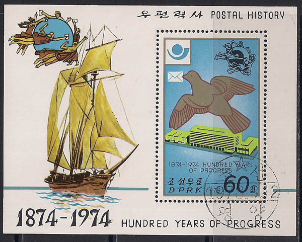 КНДР 1978 год. 100 лет Всемирному Почтовому Союзу (ном. 60). 1 гашёный блок