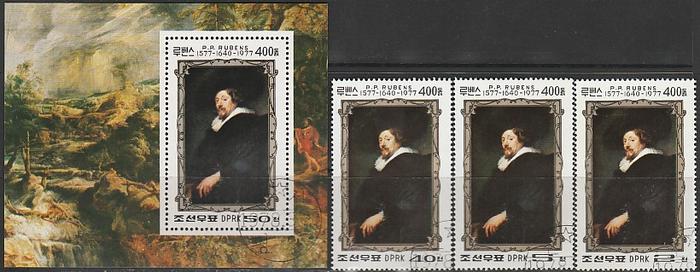 КНДР 1978 год. 400 лет со дня рождения художника Рубенса, 3 марки + блок (гашёные)