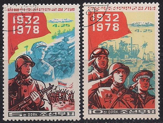 КНДР 1978 год. День Корейской народной армии. 2 гашеные марки