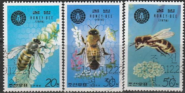 КНДР 1979 год. Медоносная пчела, 3 гашёные марки