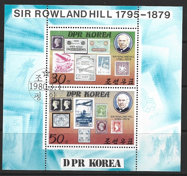 КНДР 1980 год. 100 лет со дня смерти генерал - почтмейстера Роуленда Хилла, гашеный малый лист