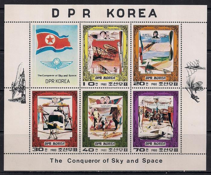 КНДР 1980 год. История воздухоплавания. 1 блок