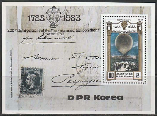 КНДР 1982 год. 200 лет воздухоплаванию. Воздушные шары, блок.