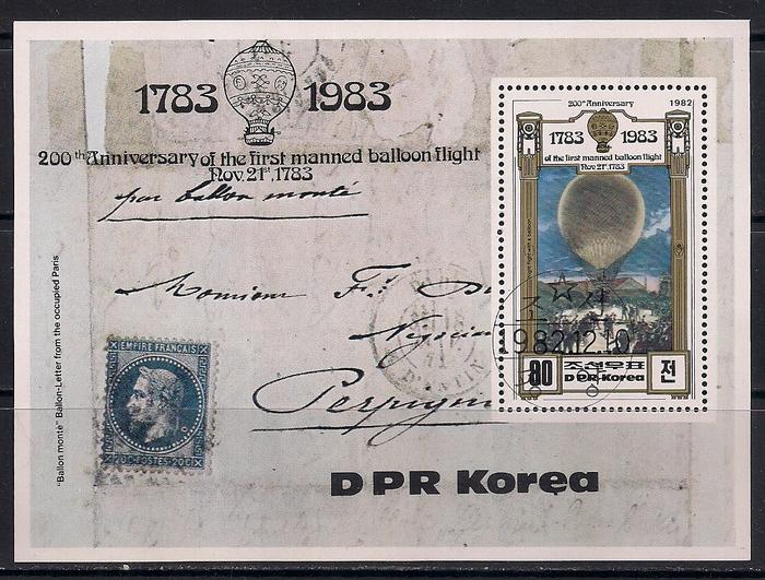 КНДР 1982 год. 200 лет воздухоплаванию. Воздушные шары. Гашеный блок
