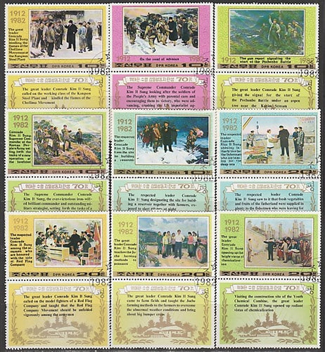 неполная КНДР 1982 год. 70 лет со дня рождения Ким Ир Сена, 9 марок с купонами (гашёные) PS: неполная серия 9 марок из 18.