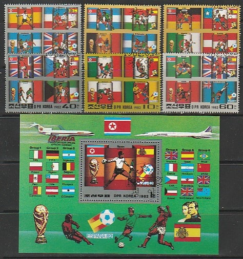 КНДР 1982 год. Чемпионат мира по футболу в Испании, 6 марок + блок (гашёные)