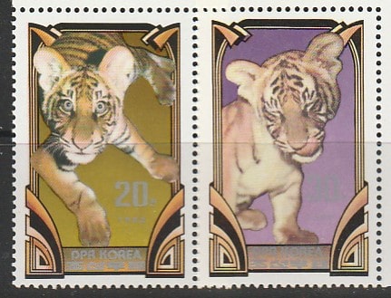 КНДР 1982 год. Тигрята, 2 марки. (7)