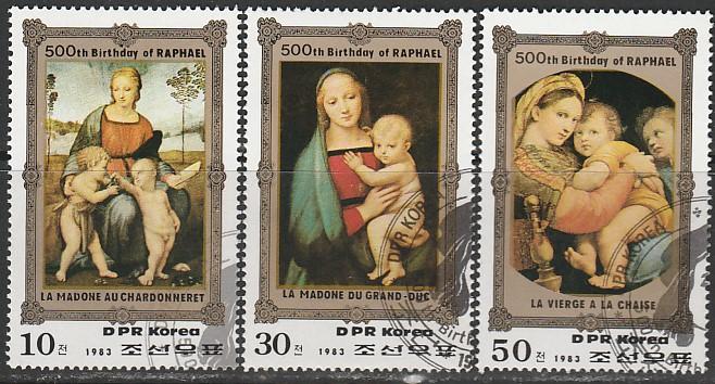 КНДР 1983 год. 500 лет со дня рождения Рафаэля. Мадонна на картинах, 3 гашёные марки