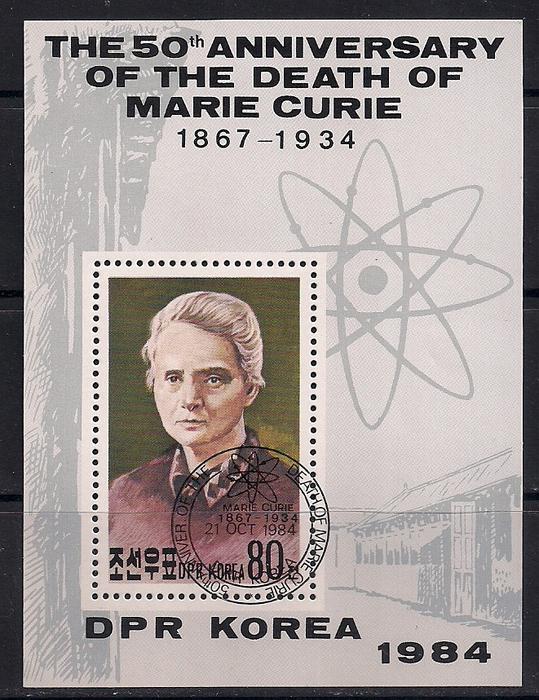 КНДР 1984 год. 50 лет со дня смерти  Марии Кюри. 1 гашеный блок