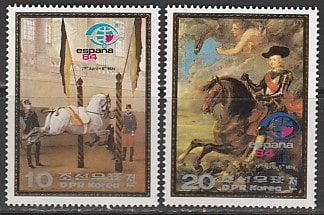 КНДР 1984 год. Филвыставка в Мадриде. Конный спорт. Живопись, 2 марки. (н