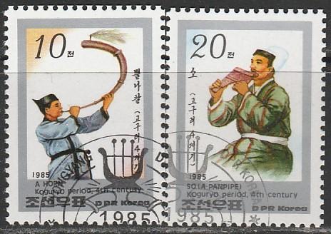 КНДР 1985 год. Корейские музыкальные инструменты, 2 гашёные марки