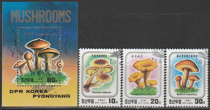 КНДР 1987 год. Грибы, 3 марки + блок