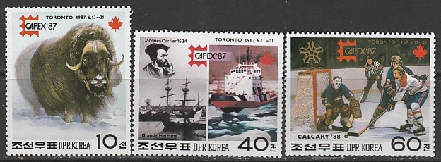 КНДР 1987 год. Международная филвыставка в Торонто. Зимние Олимпийские игры в Калгари, 3 марки