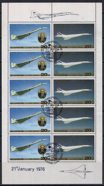 КНДР 1987 год. Самолёт "Ту-144". Гашёный малый лист.