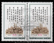 КНДР 1988 год. Дом в котором родился Ким Ир Сен, пара марок (гашёные)