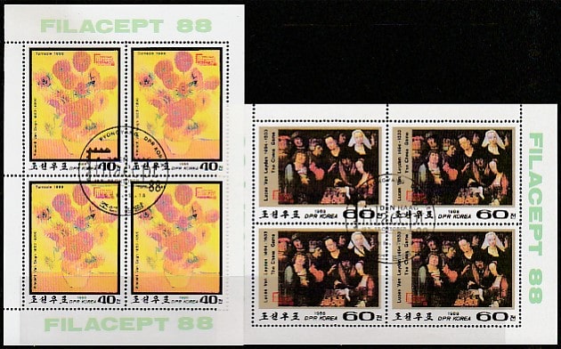 КНДР 1988 год. Международная филвыставка в Гон-Конге. Картины, 2 малых листа (гашёные)