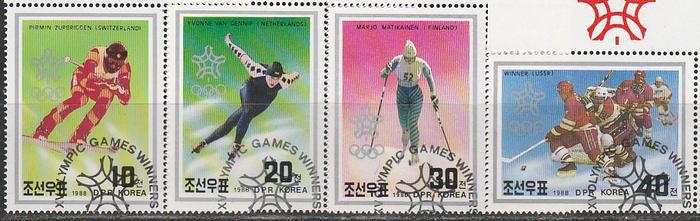 КНДР 1988 год. Победители Зимних Олимпийских игр в Калгари, 4 гашёные марки