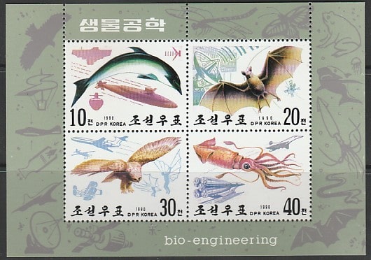 КНДР 1990 год. Фауна и техника, блок (182.3107)