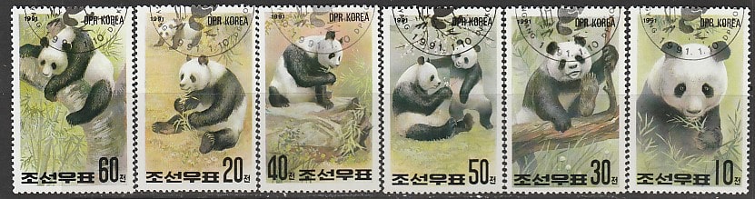 КНДР 1991 год. Большая панда, 6 гашёных марок