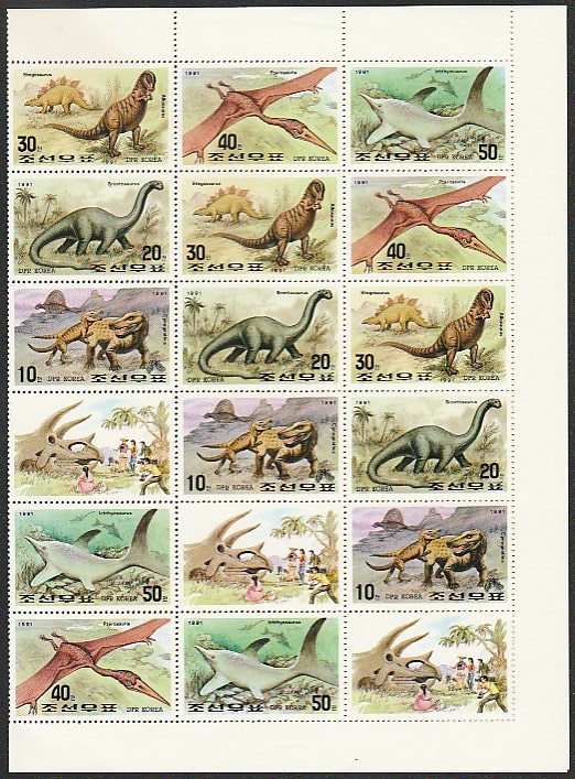 КНДР 1991 год. Доисторические животные, лист (сложен пополам)