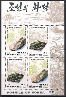 КНДР 1995 год. Окаменелости (ЧК). Малый лист