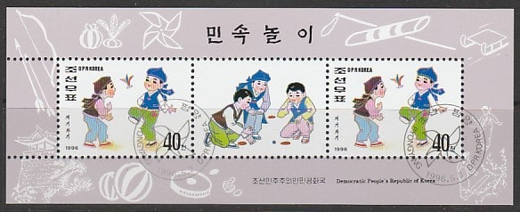 КНДР 1996 год. Детские игры. Бадминтон, малый лист (гашёный)