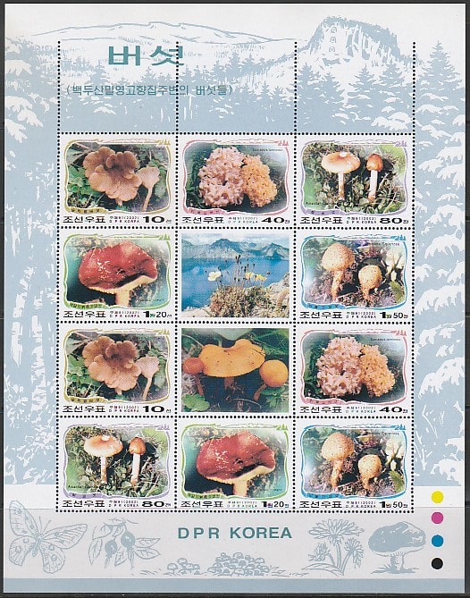 КНДР 2002 год. Грибы, малый лист (н