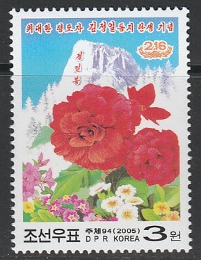 КНДР 2005 год. 63 года со дня рождения Ким Чен Ира. Цветы в Пэктусане, 1 марка.