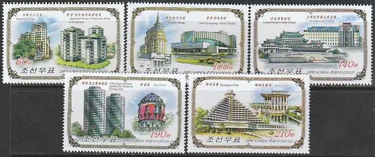 КНДР 2012 год. Международная филвыставка в Москве. Архитектура Пхеньяна, 5 марок.