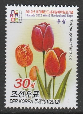 КНДР 2012 год. Международная выставка цветов в Нидерландах, 1 марка.