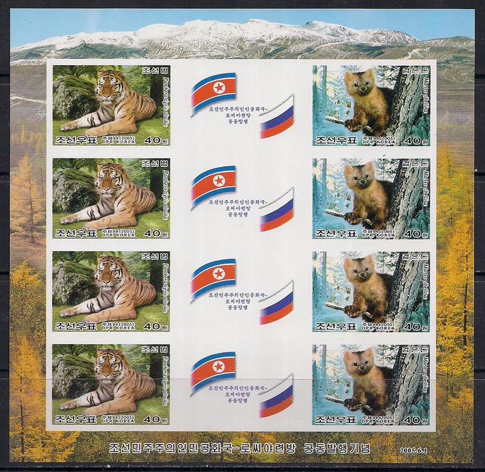 КНДР - Россия 2005 год. Дикие животные. 1 лист. без зубцов. Совместный выпуск