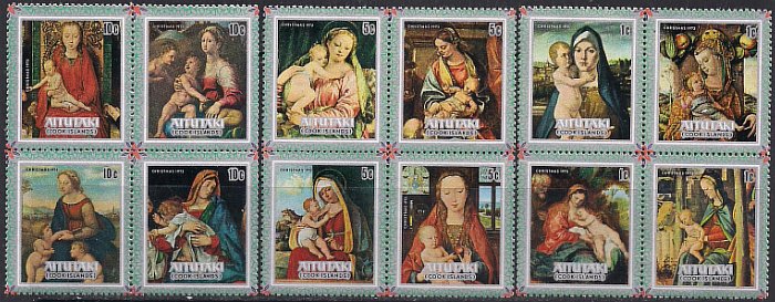 Кокосовые острова 1973 год. Рождественская живопись. 12 марок 10м